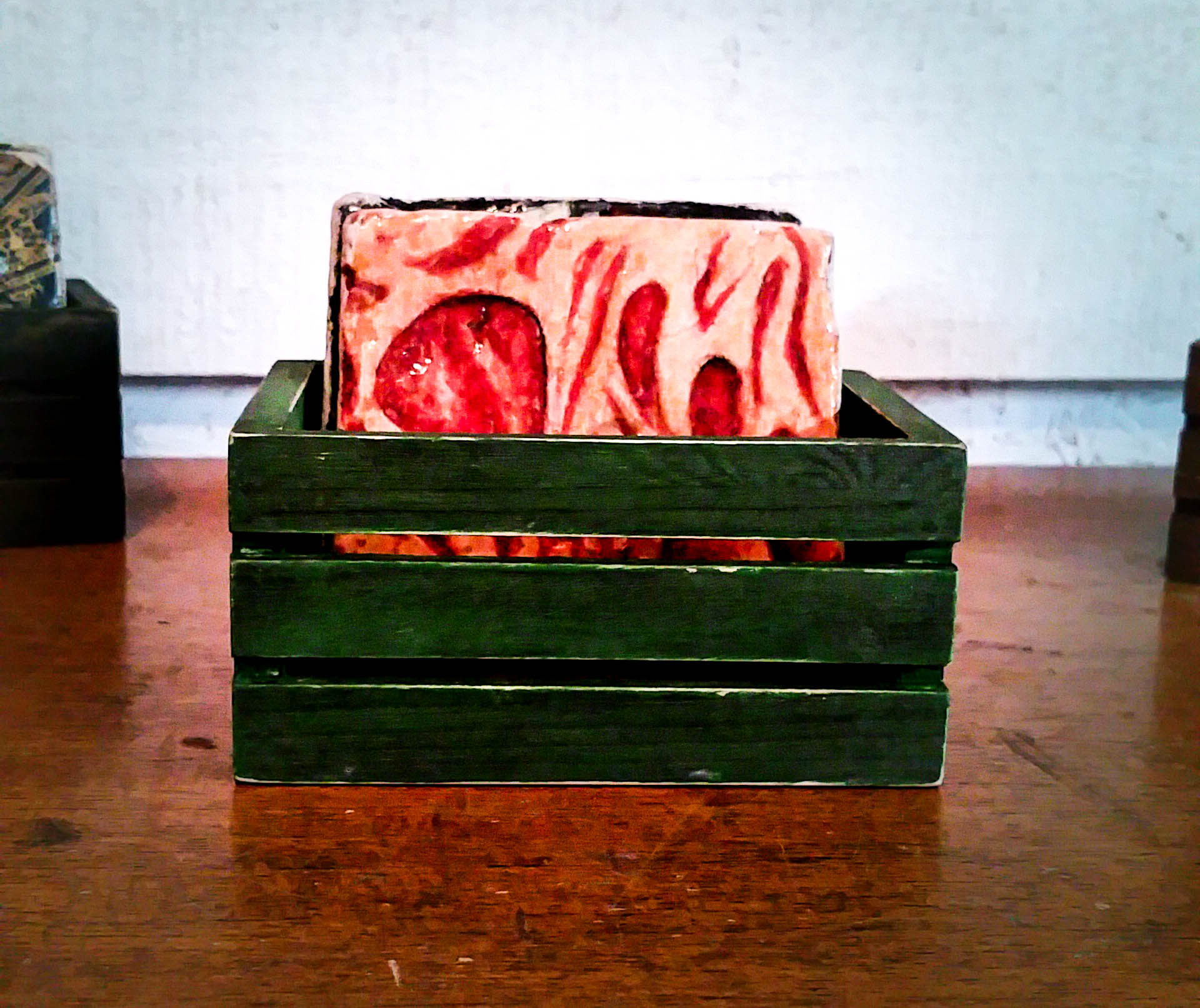 This listing is for the GREEN Sick & Distressed Drink Coaster Crate. Also available in red, green, and a walnut finish. See store for individual listings.